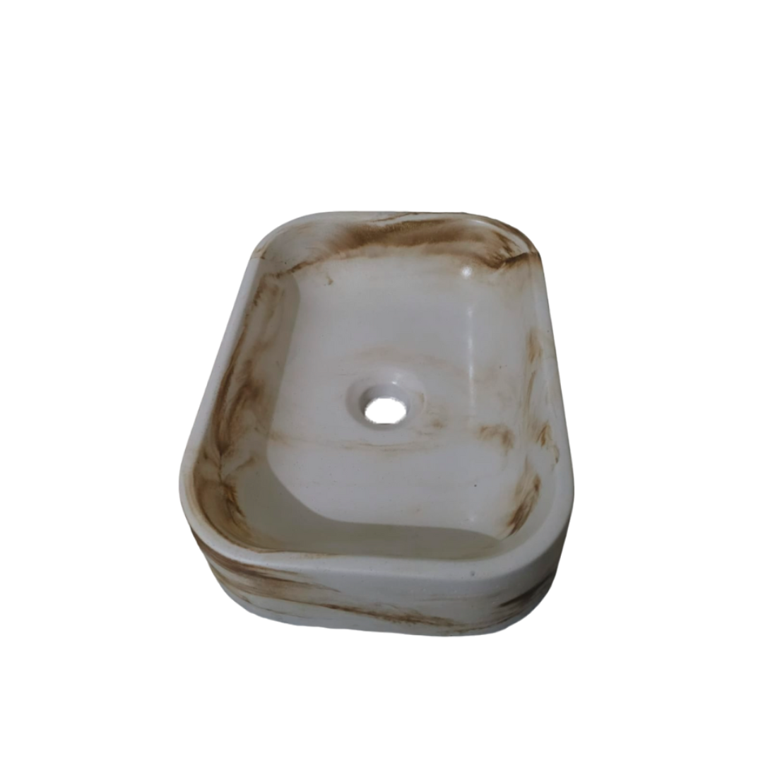 Devido ao processo artesanal, cada uma de nossas cubas com efeito marmorizado é única. Os traços e nuances de cor podem variar, resultando em uma peça exclusiva para o seu ambiente.